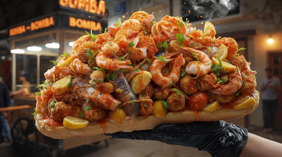 لو قلبك جامد وبتحب الأكل "المولع"، يبقى ديناميت بومبا هو طلبك! ميكس جبار من الجمبري والسبيط الكريسبي، غرقانين في صوص الديناميت الحار الخاص بنا اللي بيجمع بين الطعم الكريمي ولسعة الشطة المظبوطة. في عيش طازة ومعاهم رشة بصل أخضر أو صوص زيادة يخلي كل قطمة عبارة عن "انفجار" سعادة. سندوتش للناس اللي بتدور على التجديد والطعم الجريء.