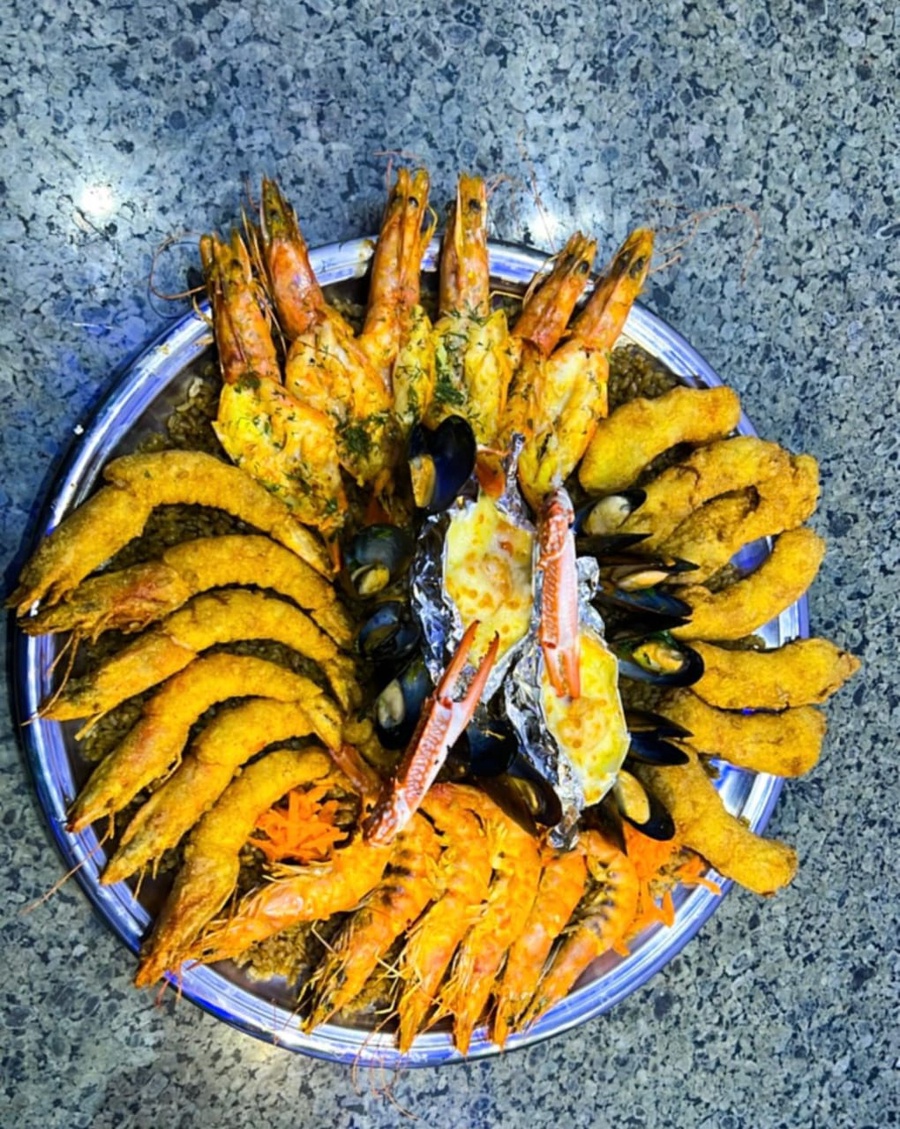 صنيه "الأكيلة" اتسمت كدة عشان هي فعلاً محتاجة حد قلبه ميت وبيفهم في الأصول! بنبدأ بـ 2 كيلو جمبري حجم كبير (Super) عشان الشبع يبقى بجد، معاهم نص كيلو سمك فيليه كريسبى بيدوب في البق، ونص كيلو بلح بحر فريش بتتبيلة بومبا الخاصة. والختام اللي يوزن الدماغ: قطعتين كابوريا مخلية غرقانة في صوص السعادة وجاهزة على الأكل فوراً من غير مجهود!. صينية ملوك للأكيلة اللي بيعشقوا التفاصيل وبيحبوا يرموا العضم صح