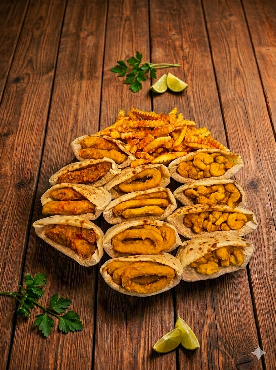 لما اللمة تحلو، مفيش غير "بوكس اللمة" اللي يسد! جهزنا لكم ترسانة سي فود في بوكس واحد: 4 ساندوتشات جمبري كريسبي يجنن، و4 ساندوتشات فيليه دايب، وكمان 4 ساندوتشات سبيط سويسي أصلي. وعشان القرمشة تزيد، ضيفنا لكم 2 بطاطس محمرة عائلية مع المخلل والطحينة اللي بتفتح النفس. بوكس يكفي ويوفي، ومعمول مخصوص للناس اللي بتحب تشارك الطعم الحلو.