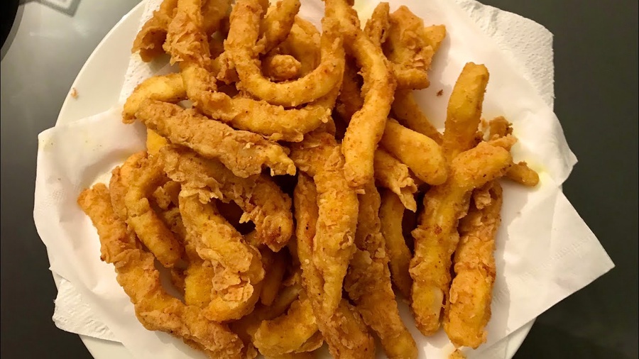 بنختار أنضف سبيط بلدي ونقطعه حلقات ونتبله بخلطة بومبا السرية اللي بتخليه مقرمش من بره وطري جداً من جوه
